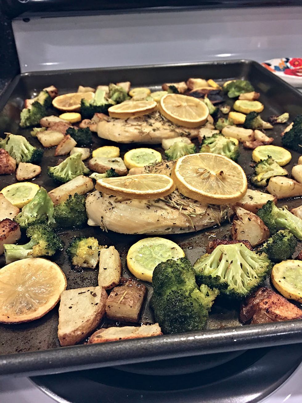Place chicken on greased baking sheet and brush with olive oil mixture. Top chicken...