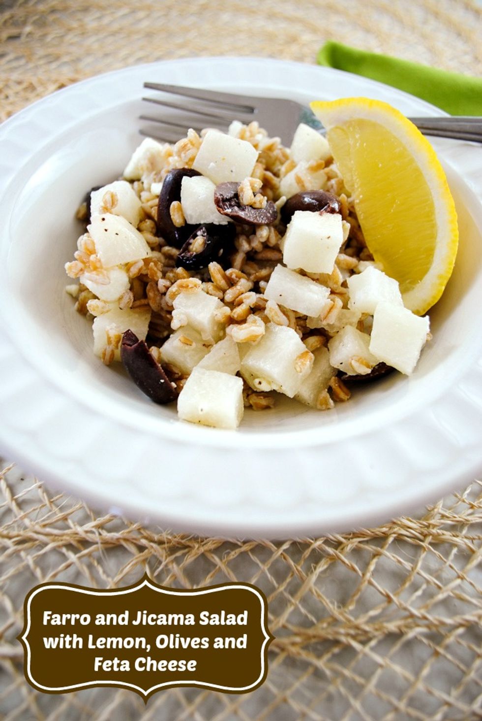 Farro and Jicama Salad with Olives, Feta and Lemon