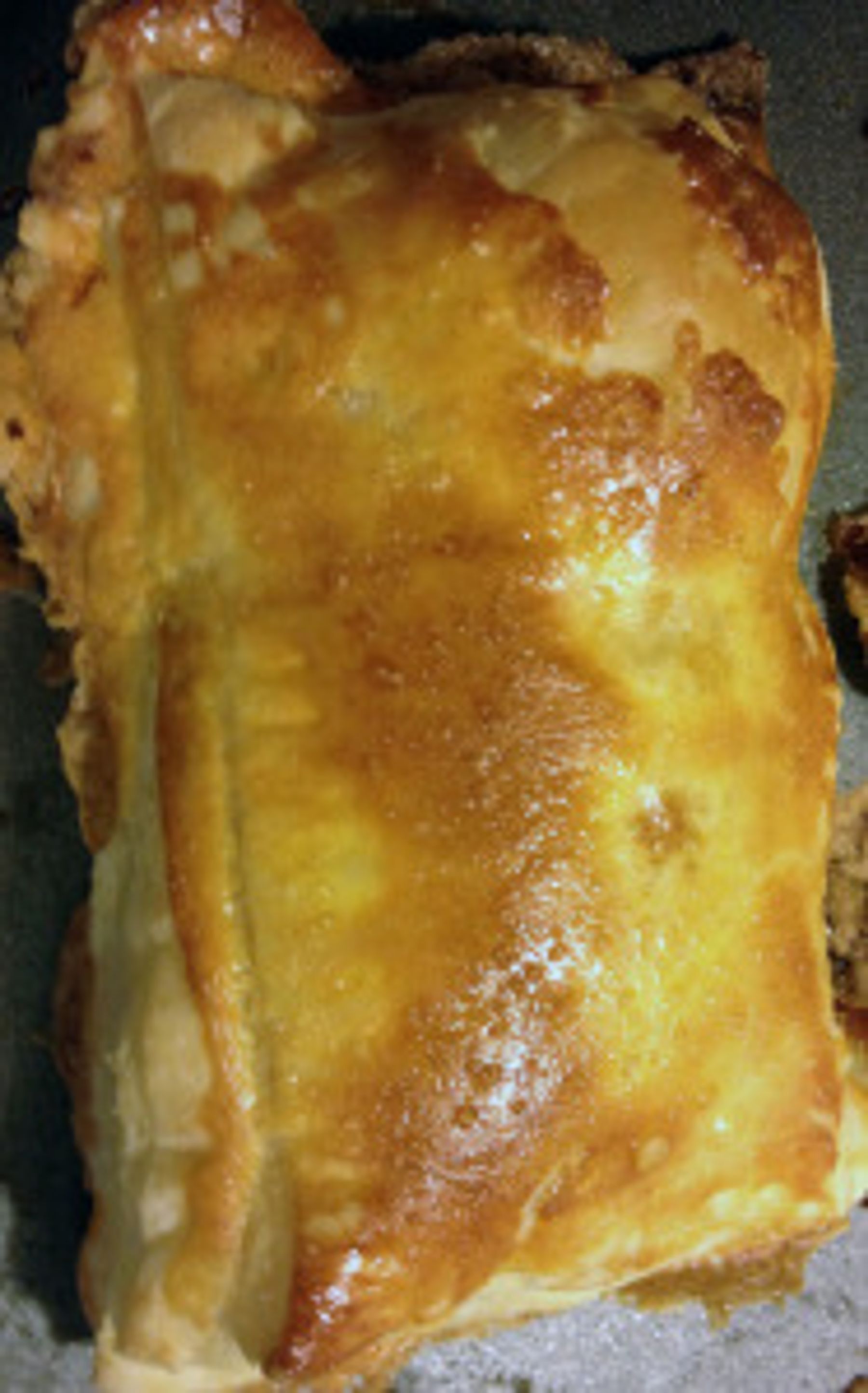 Roll out the puff pastry and cut into individual serving sizes. Layer the squares you created on top of each other...