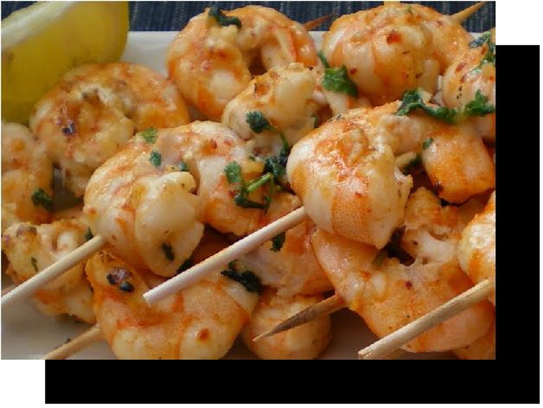 Peel and devein shrimp. Place in a zip lock bag with 1 cup olive oil, chopped garlic and cilantro. Zip lock bag and allow to chill in refrigerator for several hours. Preheat grill & place shrimp on skewers. Combine “Mojo” sauce ingredients in a small sauce pan and place on grill. Grill skewered shrimp until completely pink and firm. Place grilled shrimp skewers on a serving dish and liberally drizzle with the “Mojo” sauce. Pour the remaining sauce in a small dish for dipping. Excellent served with rice or French bread for soppin’ up all that wonderful juice… Enjoy!