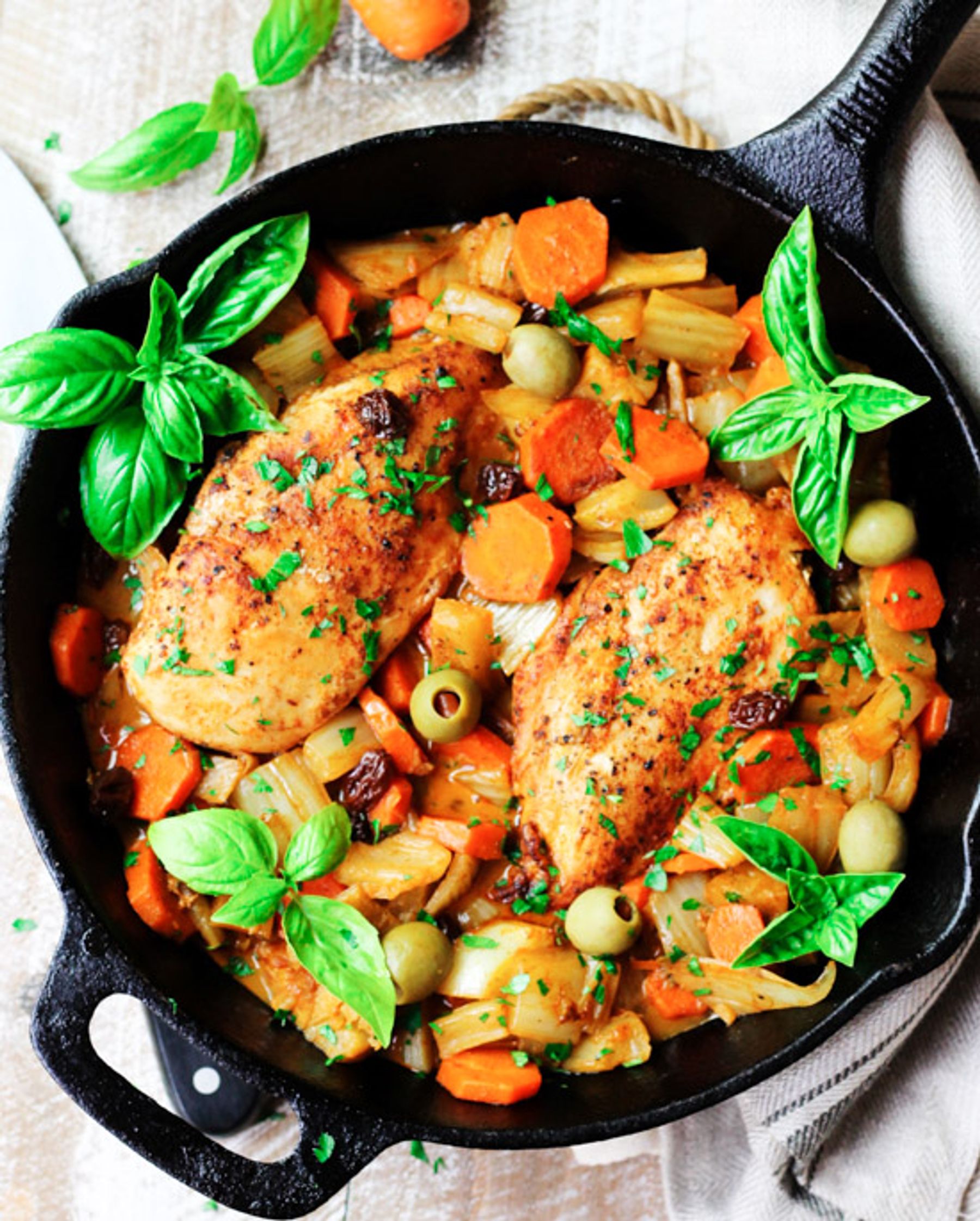 Fennel Chicken Mediterranean Style with Carrots, Raisins and Olives