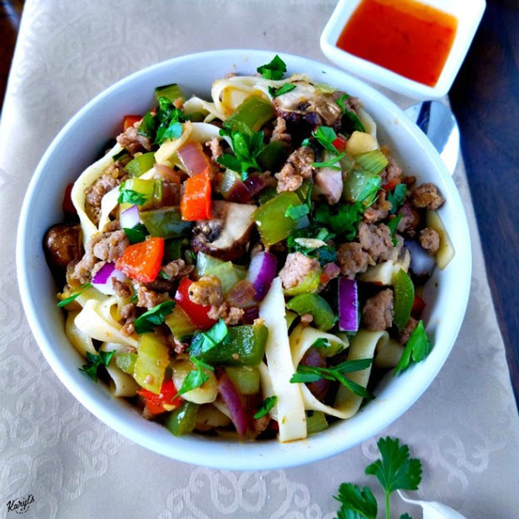 http://karylskulinarykrusade.com/recipe-fettucini-with-ground-turkey-and-vegetables/