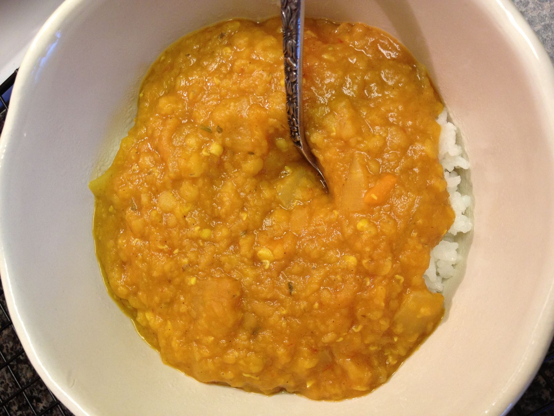 Stir in the tomato paste until well combined. Cook until the soup is desired consistency, adding more water if necessary. Serve over prepared rice.