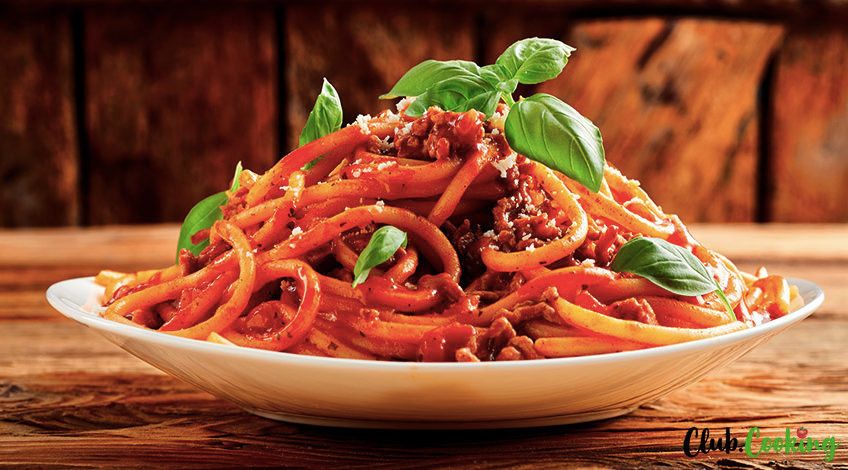 Filipino style spaghetti dish is an adaptation of a classic Italian spaghetti with meat sauce with a local Filipino twist. It has a pronounced sweet flavor thanks to the red sauce made with tomatoes and sweetened with banana ketchup or sugar.