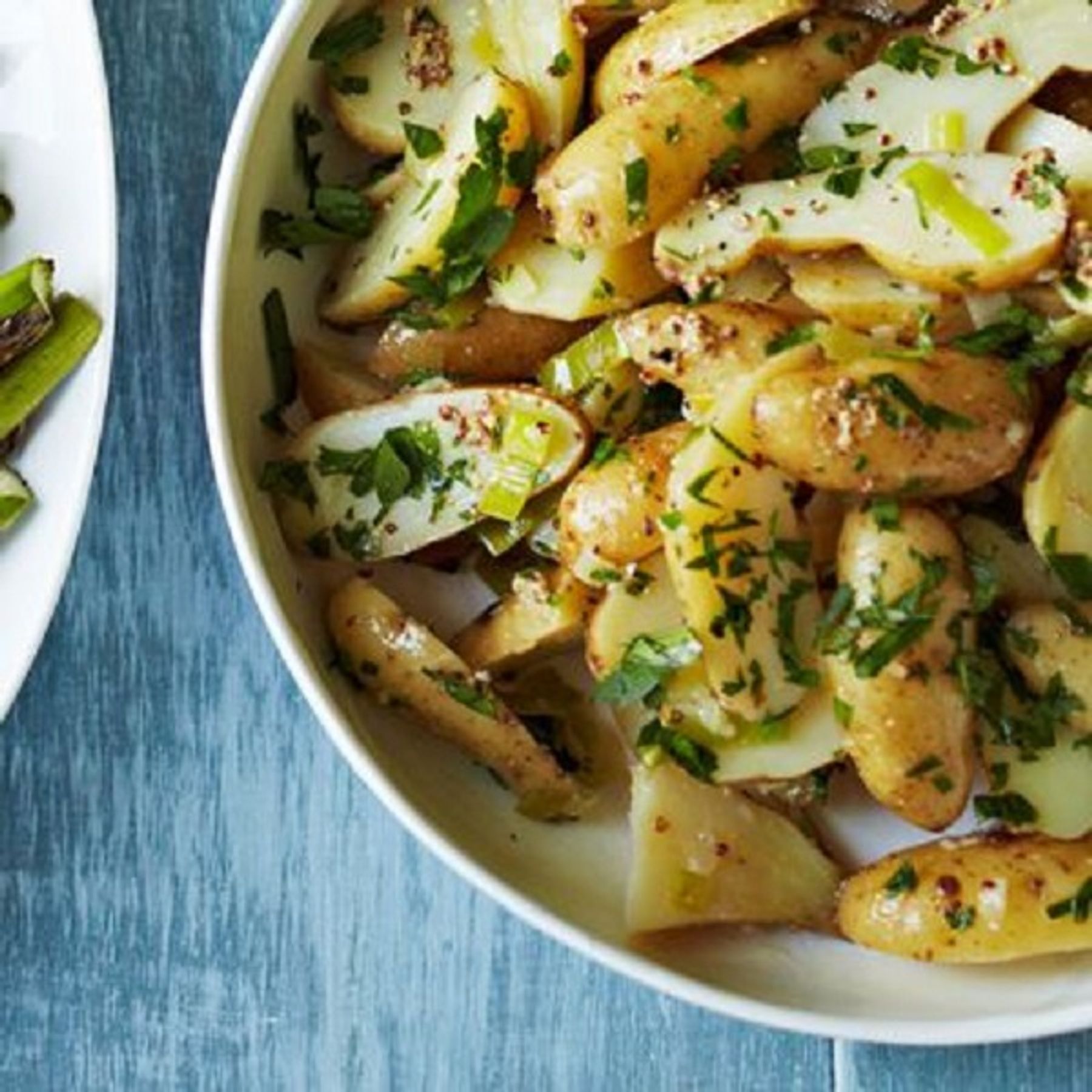 Chop the potatoes into 1/2 inch pieces and steam them until tender but not mushy (about 10 minutes). Leave the skins on!
