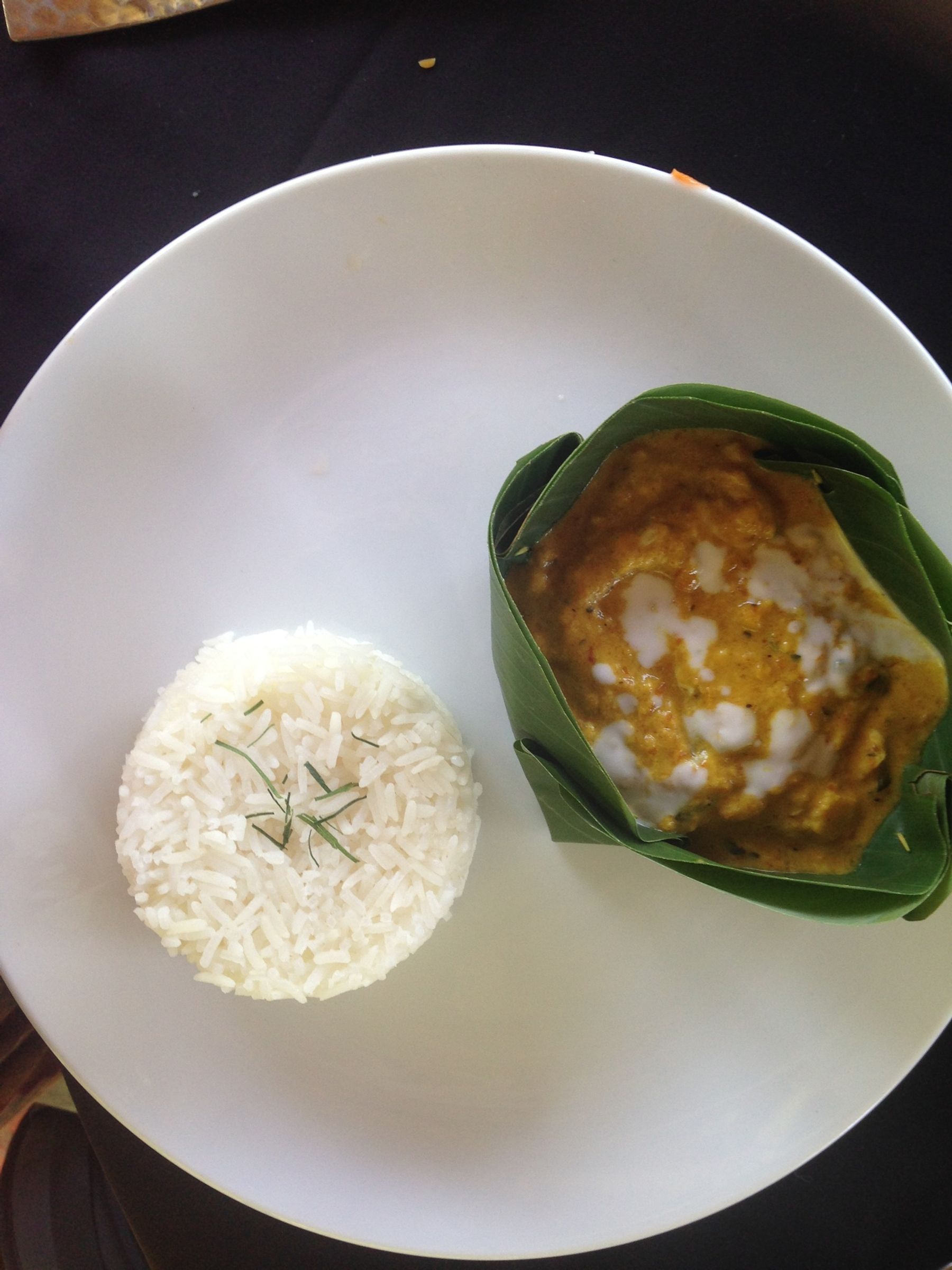 Fish amok is the national dish of Cambodia and once you taste it you'll know why. It is deliciously creamy yet surprisingly light, and quite mild when compared to neighboring Thai or Vietnamese curries. "Amok" refers to the process of steam cooking a curry in banana leaves, or in this case the delicious placed inside.