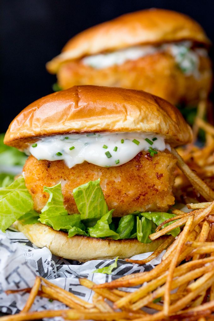 Crispy Fish Burger with Shoestring Fries and garlic lemon mayo - a great alternative to that takeout burger!