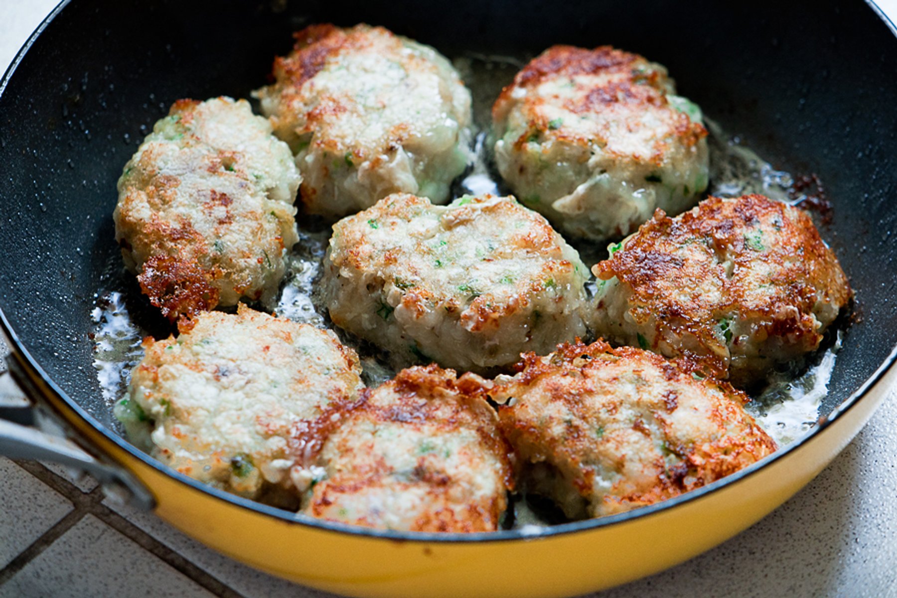 Using your electrical grinder, grind white fish fillet, parsley, ginger, garlic cloves, onion, leek. Add salt, seasoning, lemon juice, black pepper & red chili flakes. Mix well. Heat ½ cup Canola oil or...