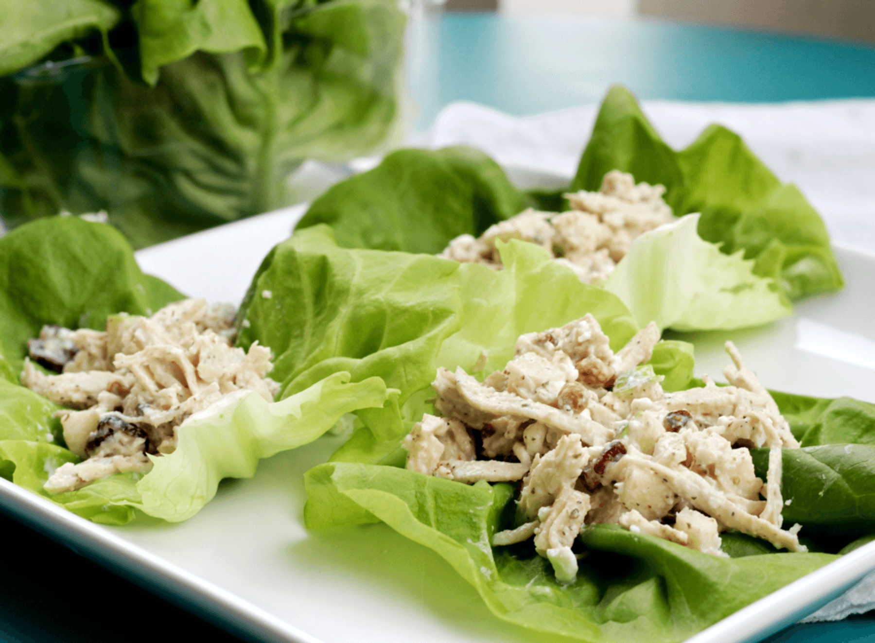 Low-fat chicken salad for the fit chick! Loaded with flavor without the calories -- perfect as an appetizer or meal!