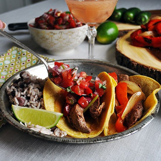 Steak Tacos with Peppers, Onions & Fresh Pico de Gallo