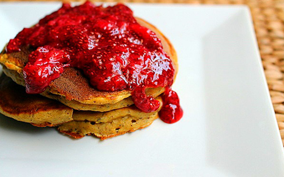 In a large bowl mix the oat flour, ground flaxseed, baking powder, and sea salt together.