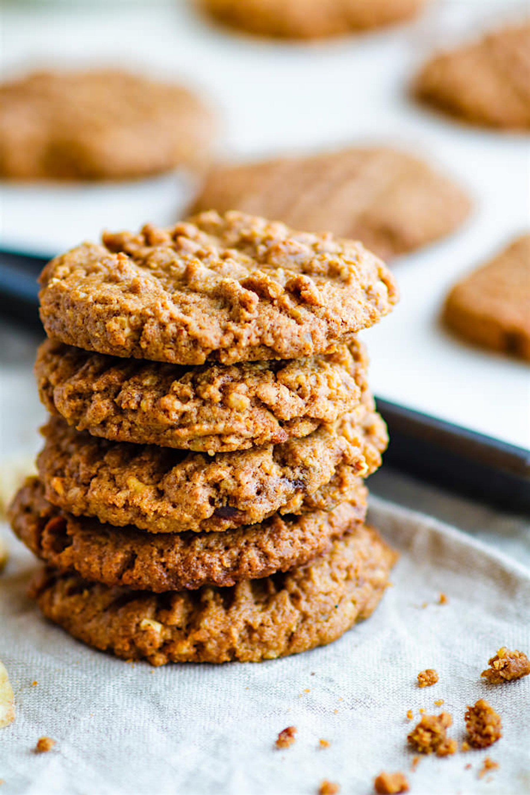 Crispy Flourless Banana Almond Butter Cookies. Healthy flourless almond butter cookies that only need a few ingredients to make! These flourless cookies are gluten free, paleo, and vegan friendly. Plus they TASTE AMAZING! Lightly sweetened with ground banana and perfectly nutty with an almond butter base. Great for kids, fuel, snacks, and breakfast on the go!
