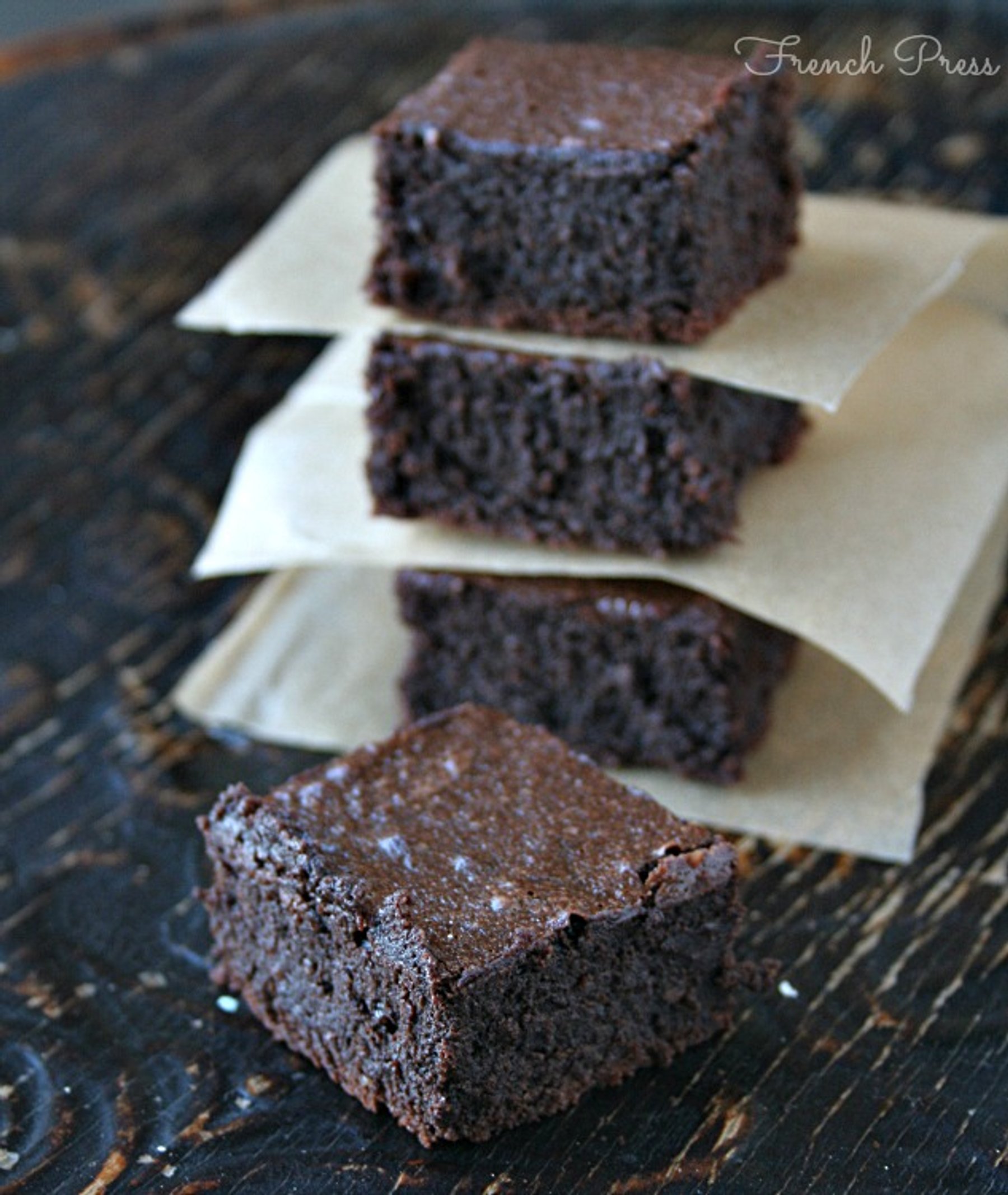 Rich and fudgey flourless dark chocolate brownies