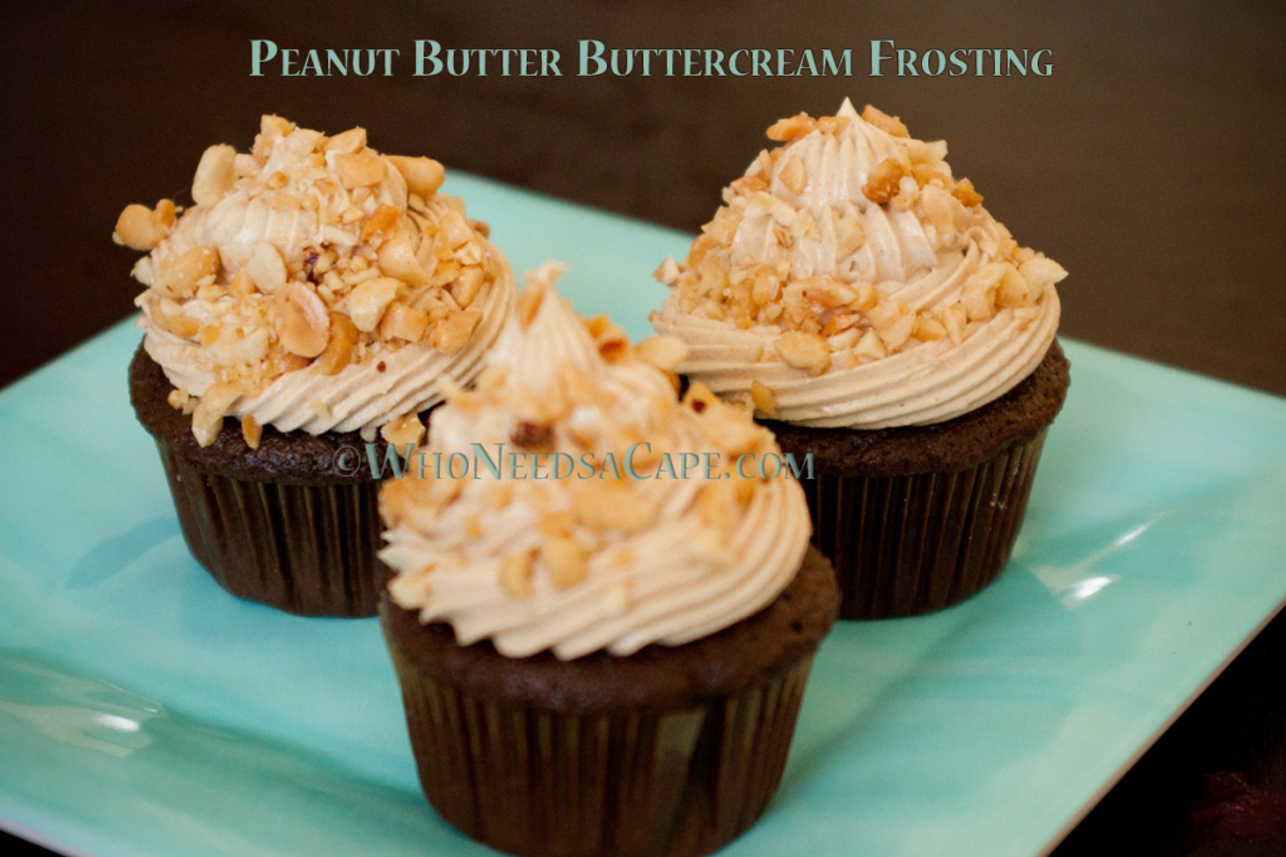 My brother in law loves peanut butter and chocolate and his birthday was coming up. So I decided to make my Peanut Butter Buttercream Frosting that I hadn’t made in forever. I did use a box cake mix that was chocolate with chocolate pieces and they turned out great! If you’re looking for more peanut butter recipes check out Lori’s Creamy Peanut Butter Pie or Heather’s 3 Layer Peanut Butter Brownies.