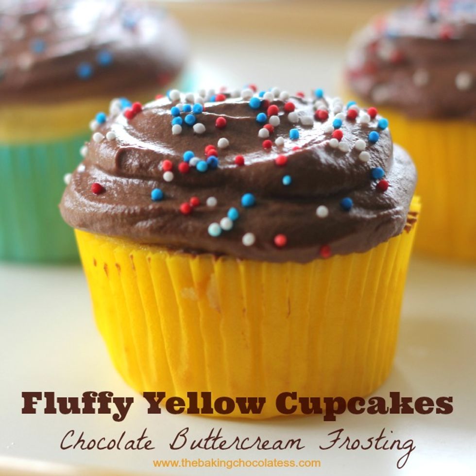 Fluffy Yellow Cupcakes with Chocolate Buttercream Frosting