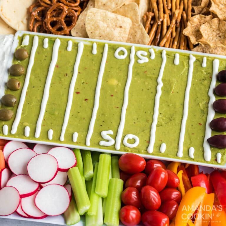 This football party tray is the perfect appetizer for game day get-togethers. Impress your guests with this easy to make platter of snacks!