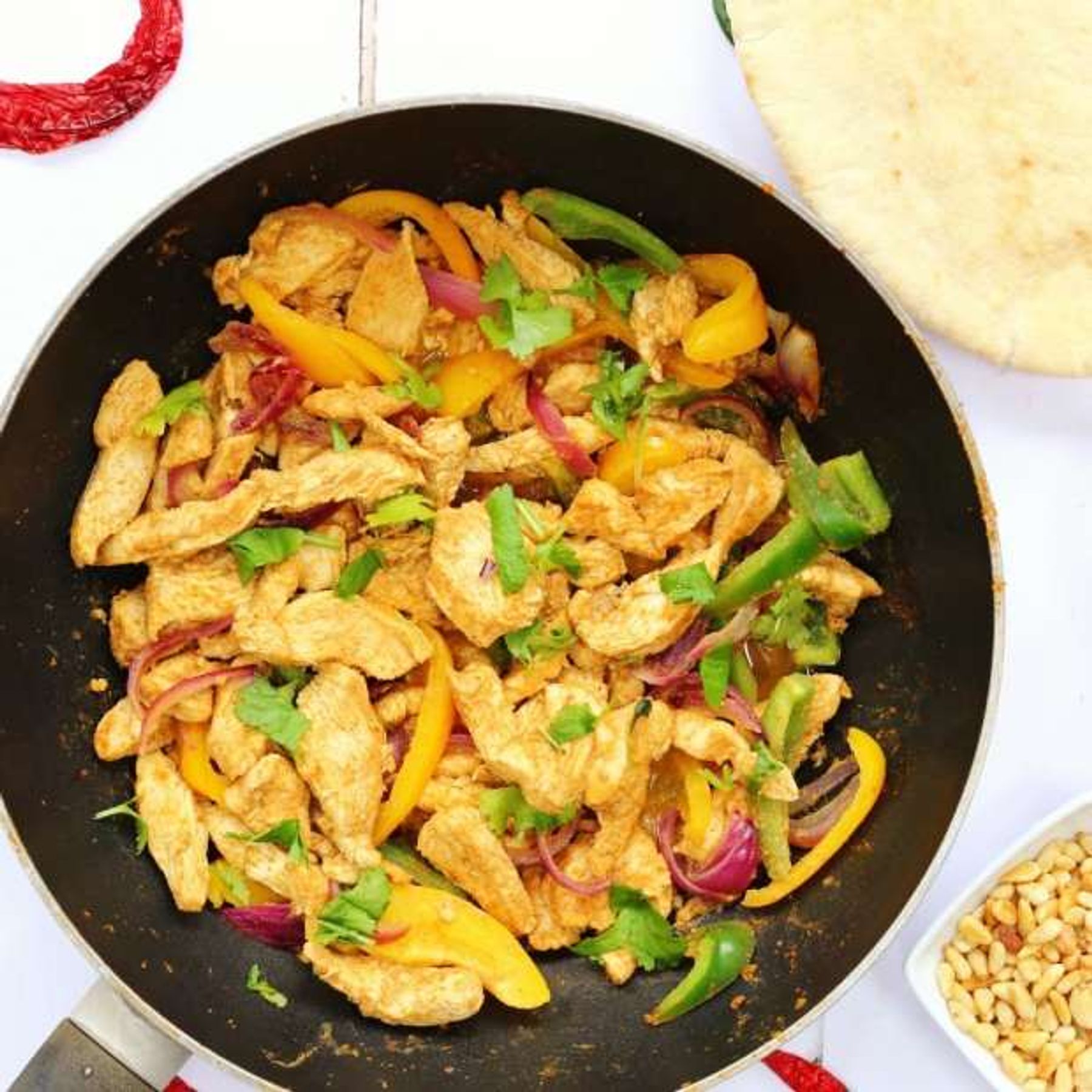 This fragrant chicken is brilliant as an easy midweek meal. A stir fried chicken recipe with North African flavours that's perfect in a pitta bread.