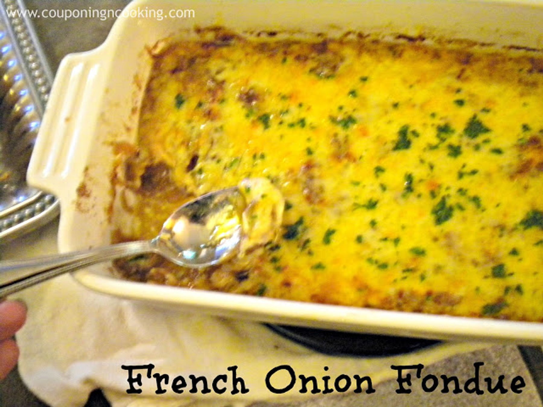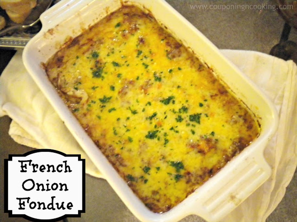 It's the best part of French Onion Soup all cooked down into a dip! Gooey Gruyere Cheese, caramelized onions and rich beef broth served up on slices of French baguettes makes for an appetizer so fancy you feel like you are eating at a restaurant!
