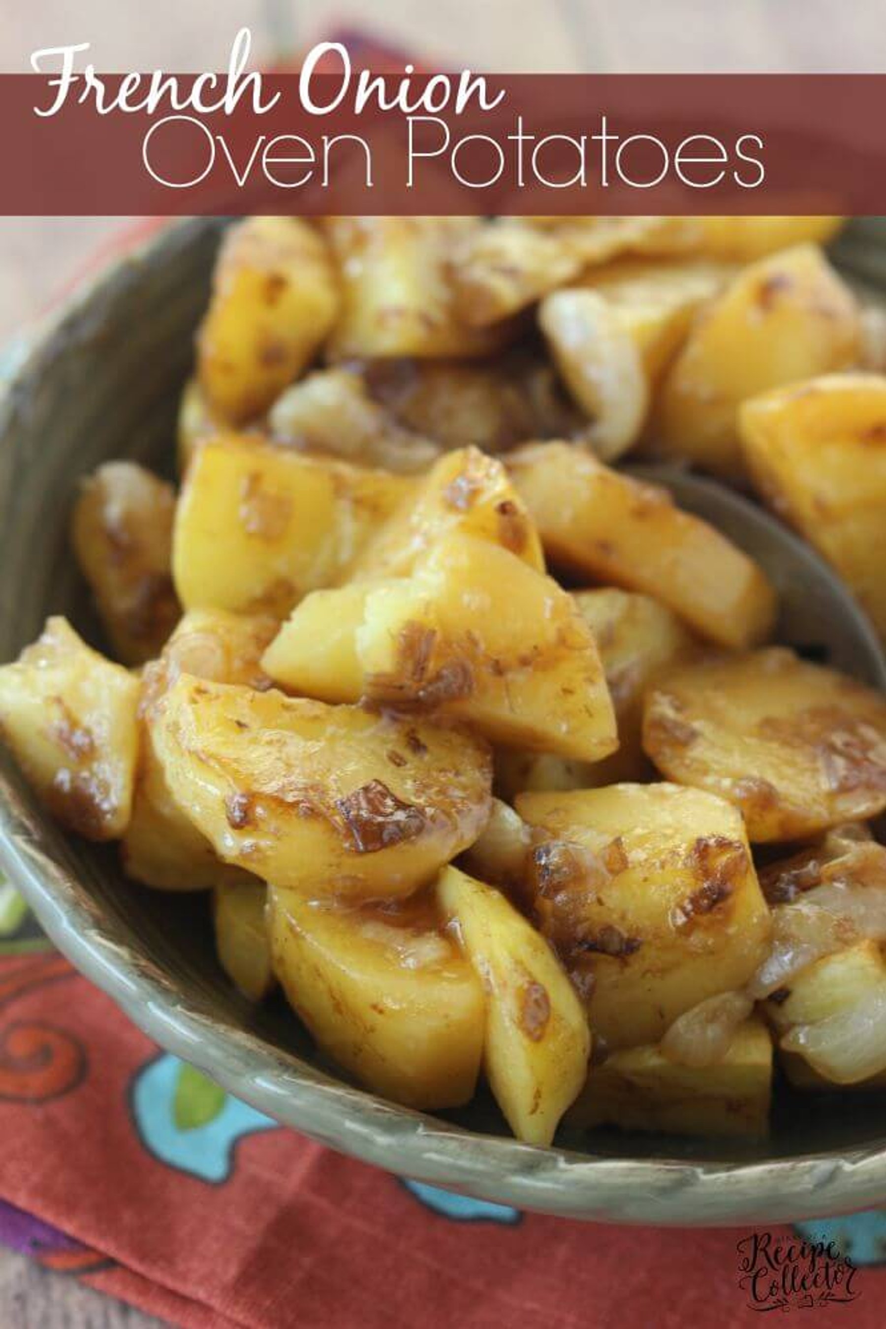 French Onion Oven Potatoes Recipe – A super easy potato side dish roasted in the oven and packed with flavor!