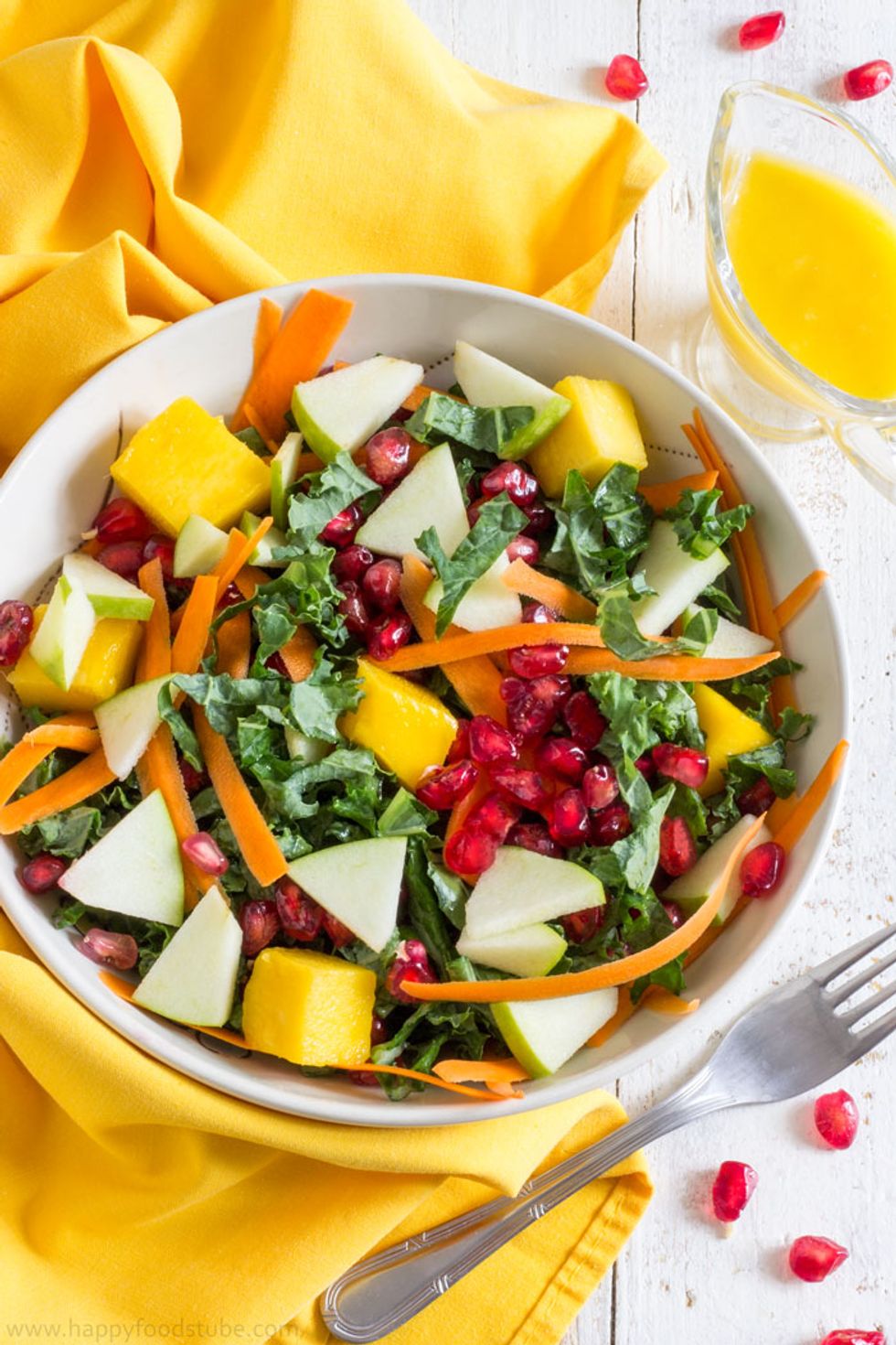 Kale salad with mango dressing is perfect after Thanksgiving! It’s light, ready in less than 15 minutes, nutritious & easy to make!