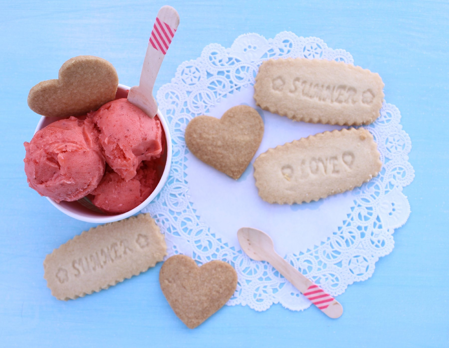 Fresh Strawberry Sorbet with Shortbread Cookies