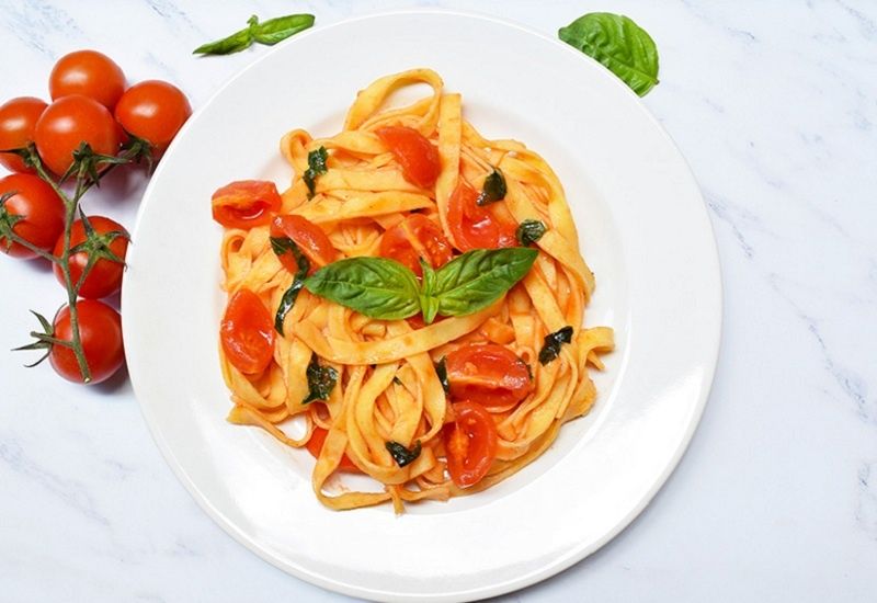 Fresh Tagliatelle With Cherry Tomatoes And Basil