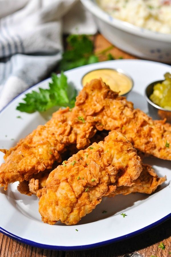 Whether you use a cast iron skillet or a deep-fat fryer, you can't beat the classic taste of crispy Fried Chicken Tenders! These chicken strips are dipped in buttermilk and dredged in seasoned flour for a family-friendly, easy dinner that's ready in about 30 minutes.