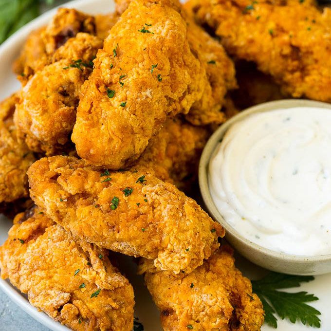 These fried chicken wings are marinated in buttermilk, then coated in seasoned flour and deep fried to golden brown perfection. Serve your fried wings with a side of ranch for an easy and satisfying appetizer or main course.