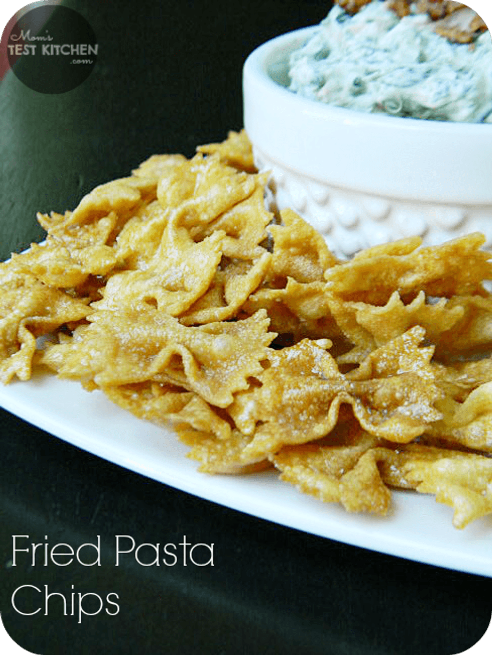 Crispy, deep fried bow tie pasta makes the perfect new scoop to serve with your favorite dip!