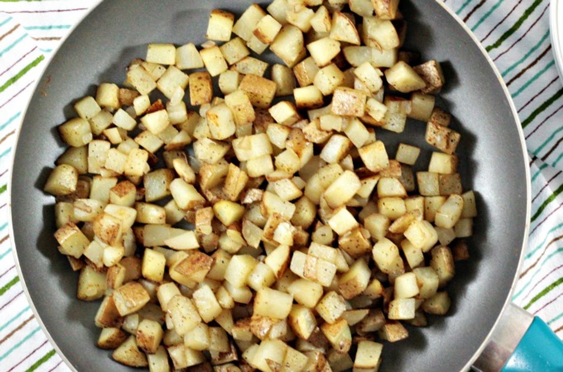 Heat oil in a 10\\\" or 12\\\" skillet over medium heat. Add potatoes, onions, salt, pepper, and garlic powder; stir. Cook for 5 minutes,...
