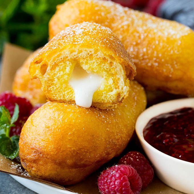 https://www.dinneratthezoo.com/fried-twinkies/These fried Twinkies feature the classic snack cakes coated in a sweet batter, then deep fried to golden brown perfection. Add a sprinkle of powdered sugar and a side of raspberry sauce for a unique and decadent dessert.
