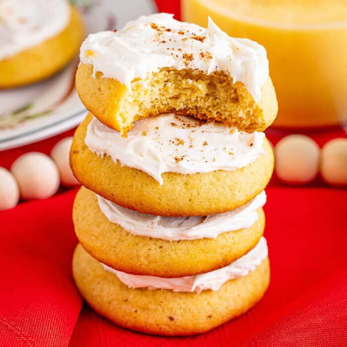 Frosted Eggnog Sugar Cookies OnMyKidsPlateJanuary 19, 2022 22 These soft and deliciously sweet frosted eggnog sugar cookies simply melt in your mouth! Perfect for sharing on holiday cookie trays, these eggnog cookies will become a new holiday tradition for your family!Find the full recipe on my site!See the full directions on my site