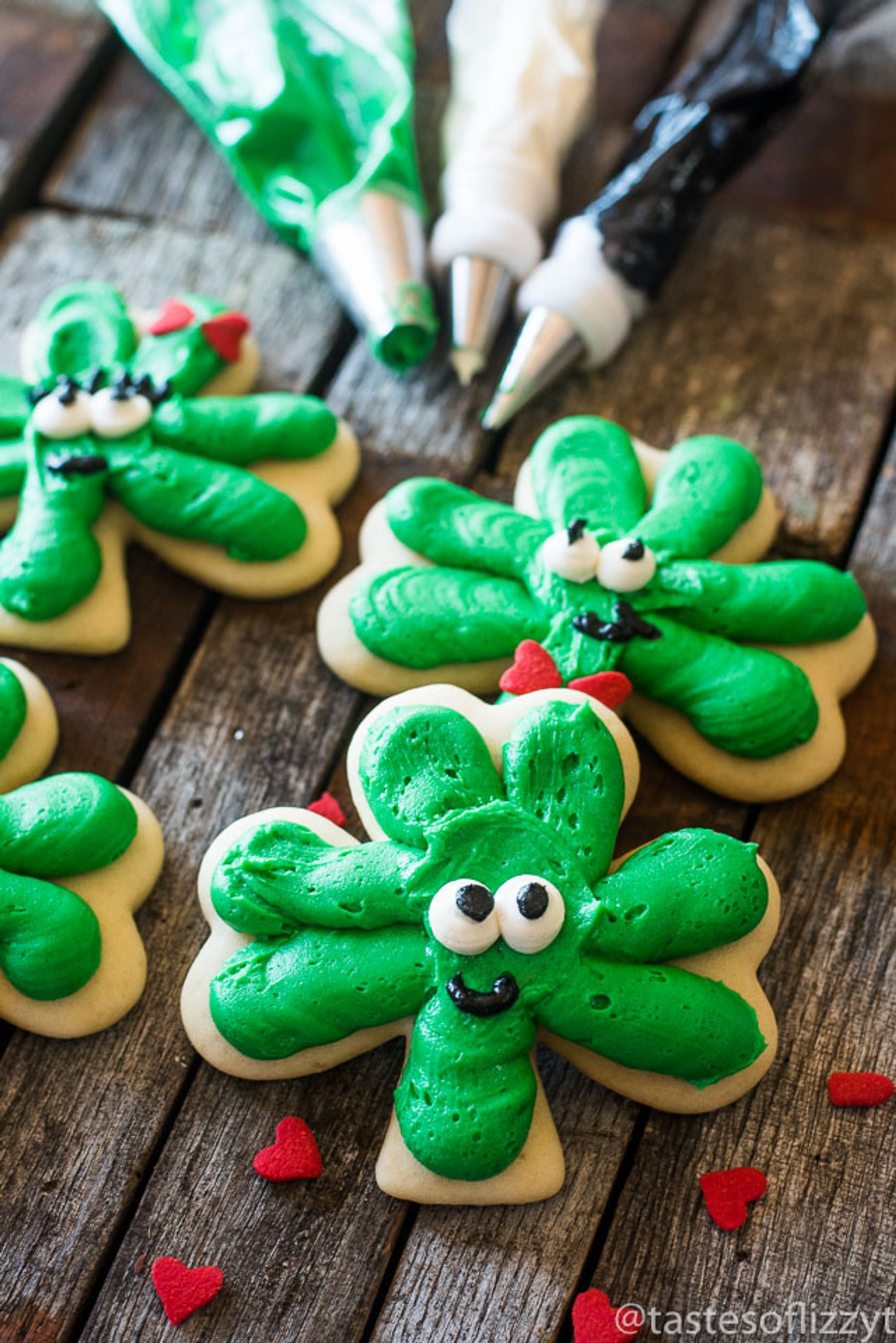 Make cute Mr. & Mrs. Shamrock Cookies for St. Patrick’s Day! Soft, thick buttermilk cut out cookie recipe and fluffy vanilla buttercream.