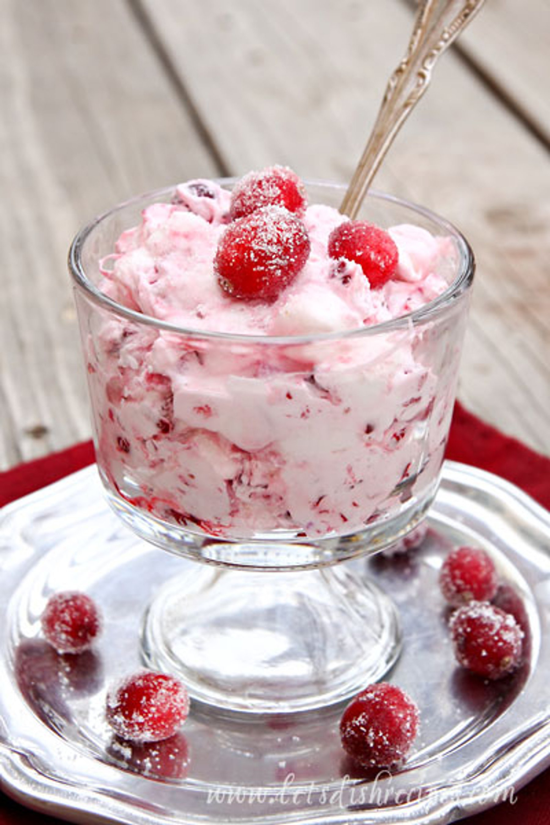 In a medium bowl, mix together the chopped cranberries and the sugar. Cover and refrigerate at least 8 hours, or overnight. With an electric mixer, whip cream until stiff. In a large bowl, combine...