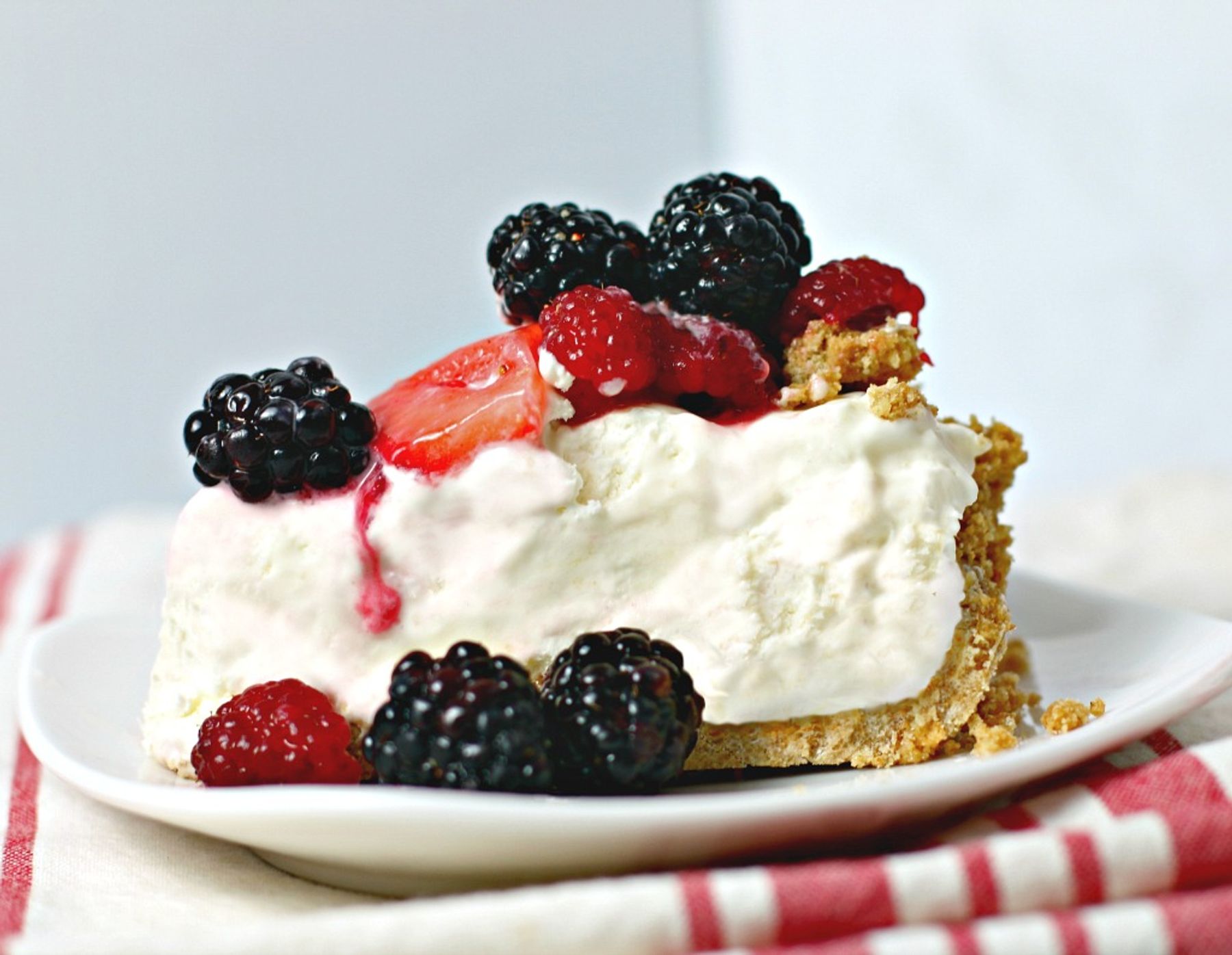 This decadent creamy Frozen Lemonade Pie with Berries is the perfect dessert for a refreshingly sweet and tart summertime treat!