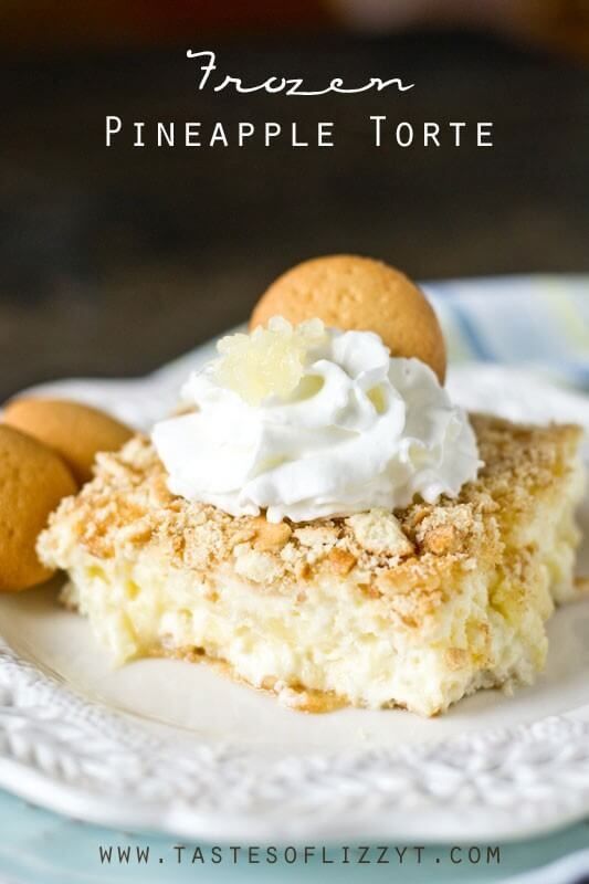 Looking for a light, refreshing, no-bake dessert? This frozen pineapple torte has vanilla wafer crumbs that surround a lightly sweetened, creamy custard filling.