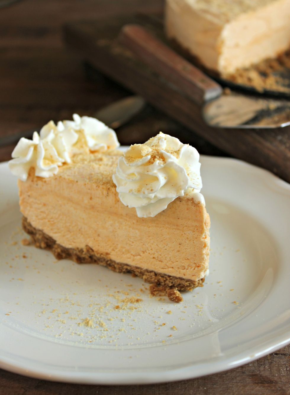 A (secretly) simple Thanksgiving dessert. A creamy frozen cheesecake with a hint of pumpkin.