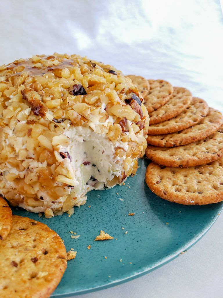 This Blue cheese ball is definitely going to be the show stopper at that next gathering. A flavorful combination that is loaded with fruit and covered in walnuts! And honey. That's right! A drizzle of honey may sound crazy but that settle hint of sweetness brings this appetizer to a whole new level.