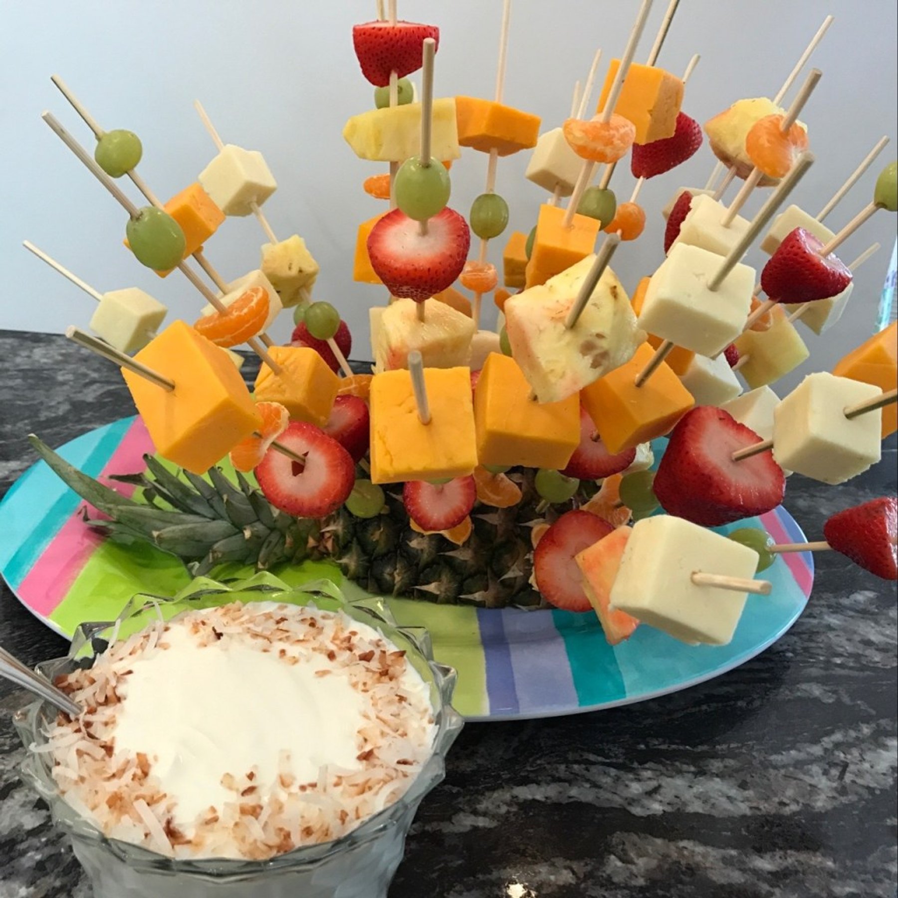 Fruit and Cheese Kebobs in a Pineapple