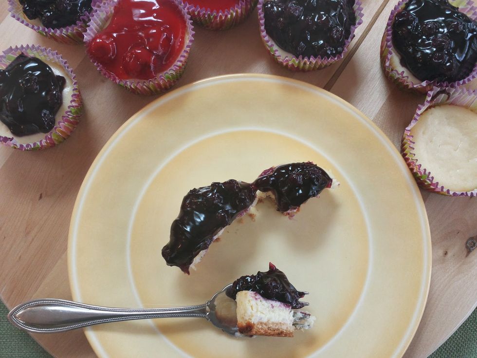 I love cheesecake! These mini cheesecakes are the perfect size, they are thick and creamy, with a cookie for the crust. I used Girl Scout trefoils for this baked to perfection crust. For those off season times when girl scout cookies aren't around a nilla wafer makes a great crust as well. Topped with fruit this mini cheesecake is a party in my mouth!
