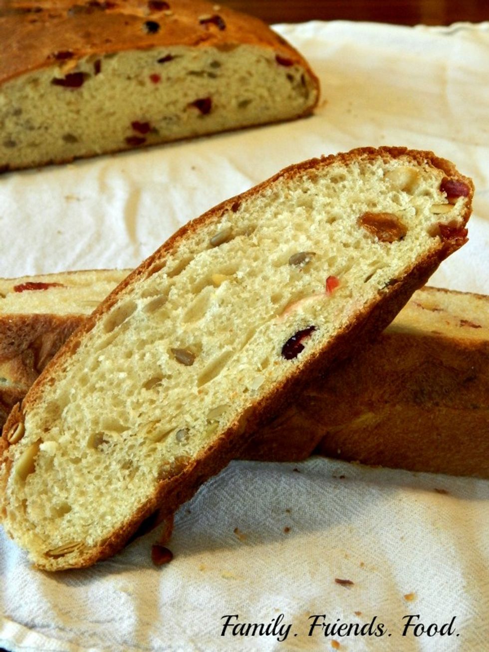 This bread is so good it can almost be described as a dessert. Full of dried fruit, pumpkin seeds, and sunflower seeds; this bread is sure to become a family favorite.