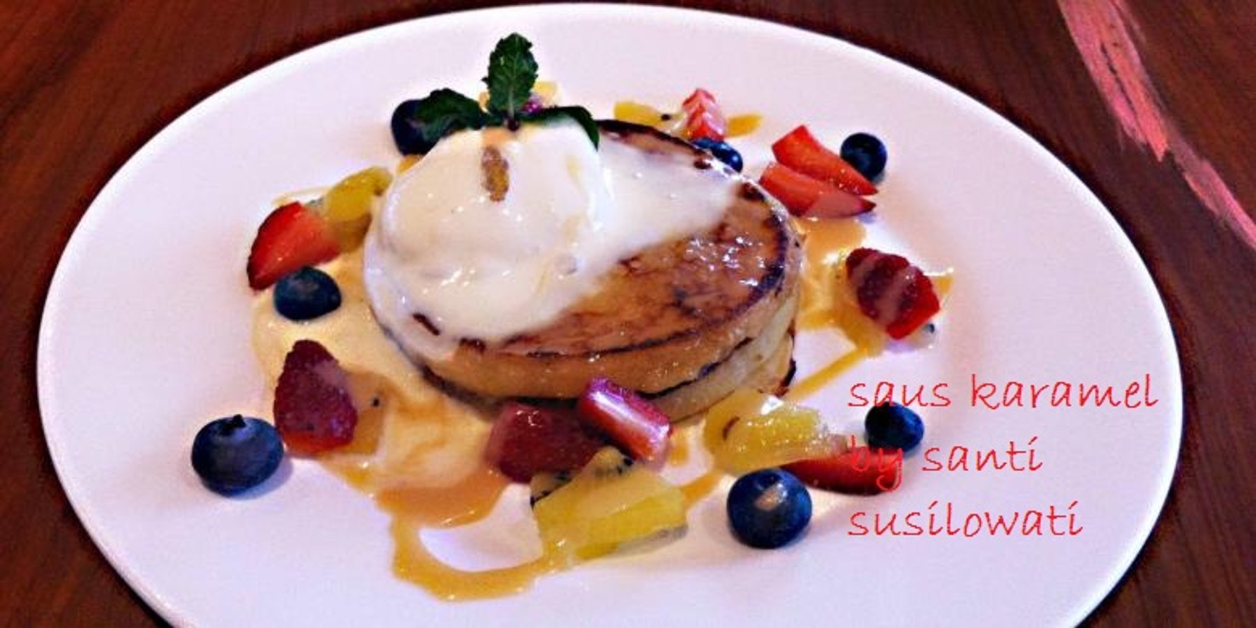 Pancake is quite easy food to be served . Not only that , you know pancakes are also delicious eaten with a variety of toppings . If you want fresh and healthy just add toppings such as fruit and ice cream creations santi susilowati following Masterchef .