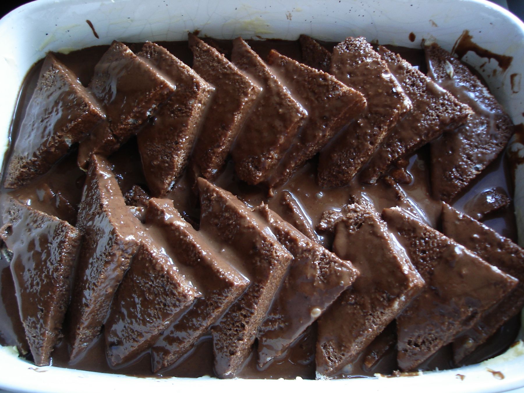 Apricot, chocolate and mixed fruit bread pudding, cooked in a slow cooker