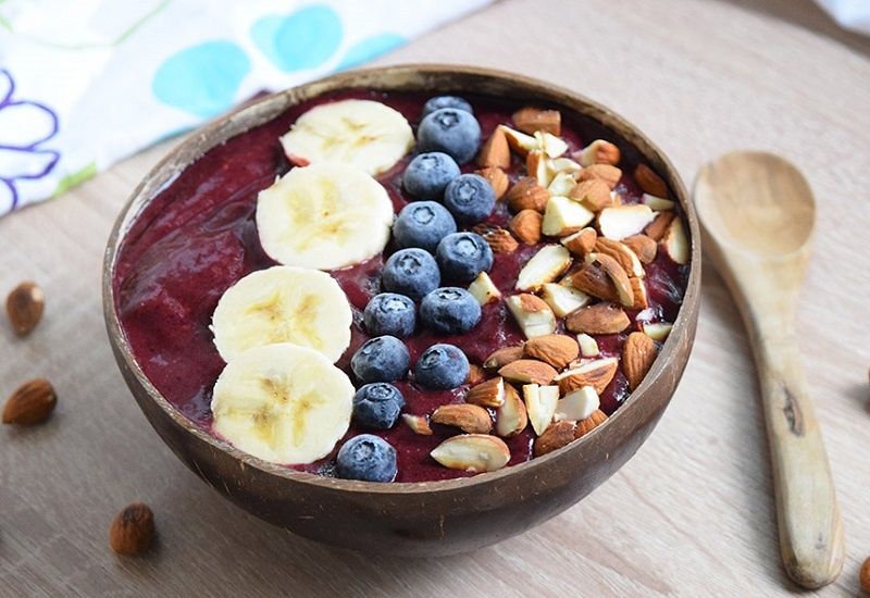 - Pour everything into a (coconut) bowl. Add topping ingredients. We haven't specified the amount of the topping...