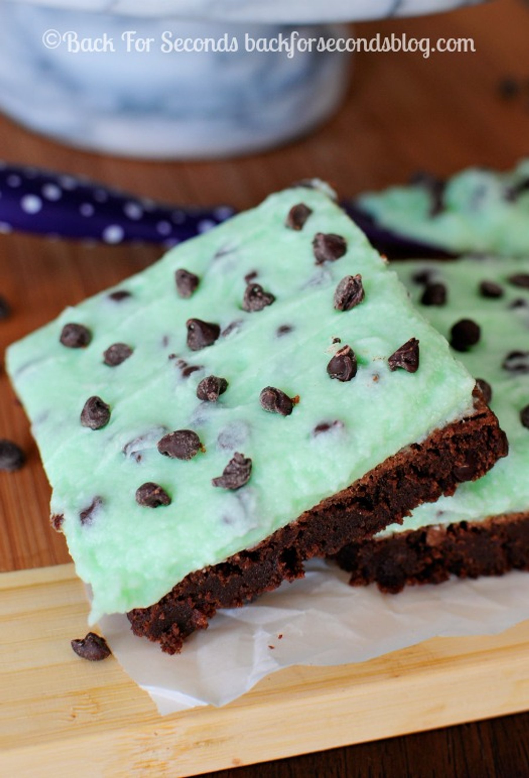 These Fudge Brownies with Mint Chocolate Chip Frosting are one of the best desserts ever! The cool, creamy, minty frosting perfectly compliments the rich, fudgy brownies.