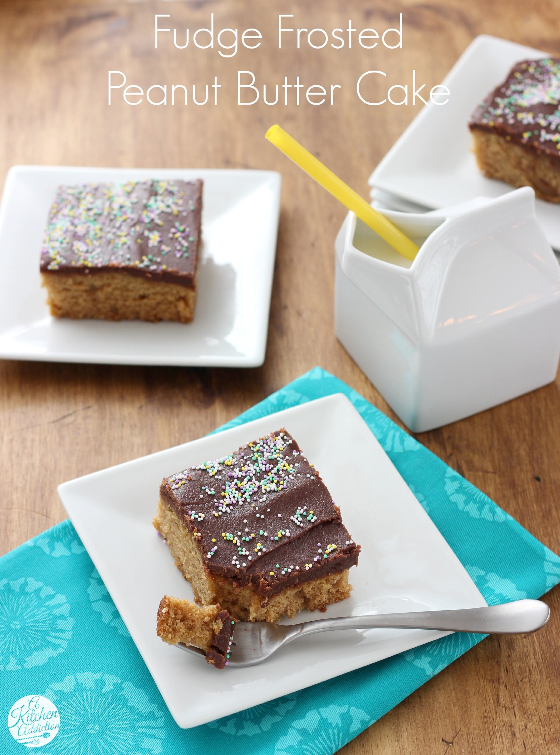 A tender peanut butter cake topped with thick, decadent fudge!