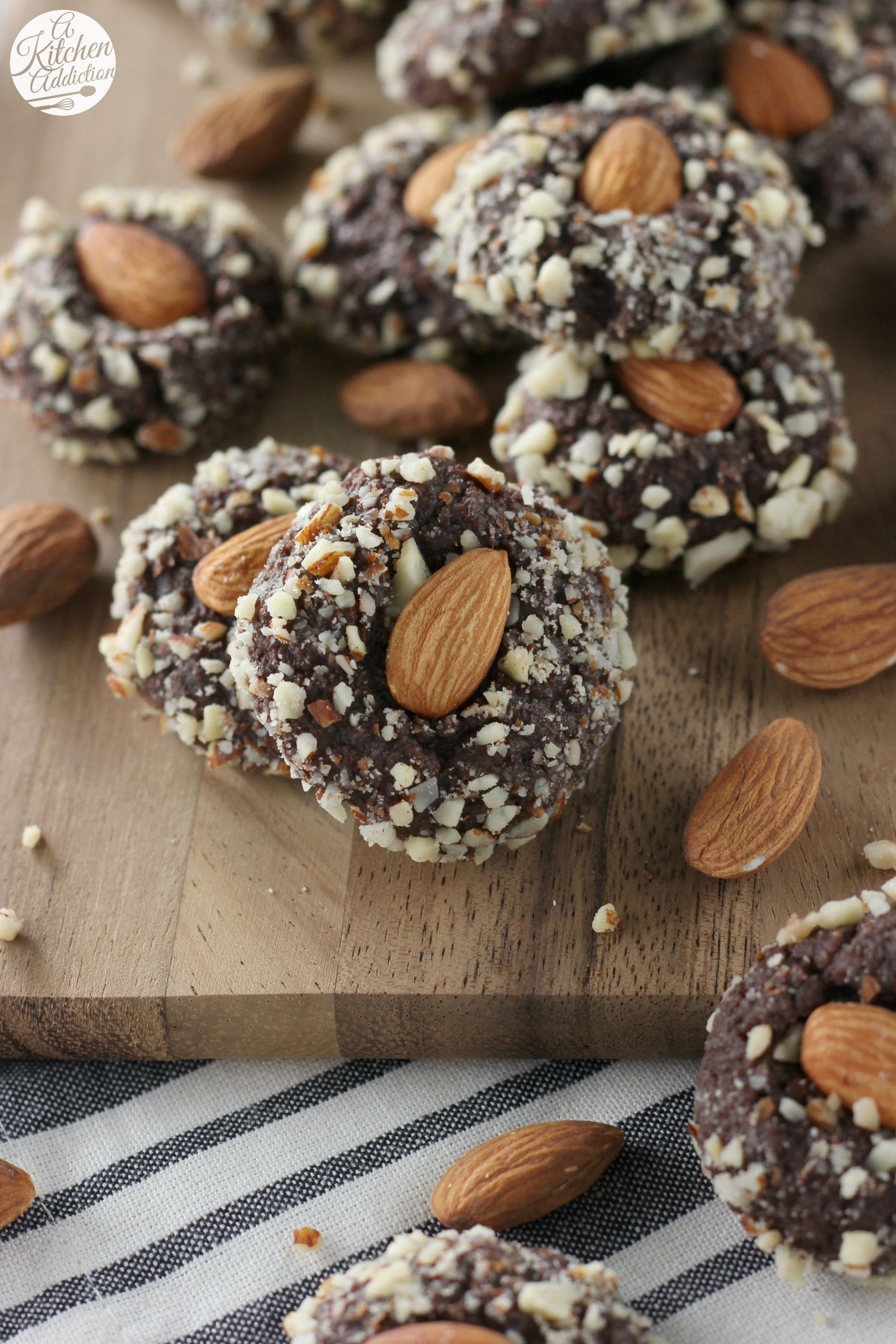 Rich, fudgy bite-size cookies coated in crushed almonds!