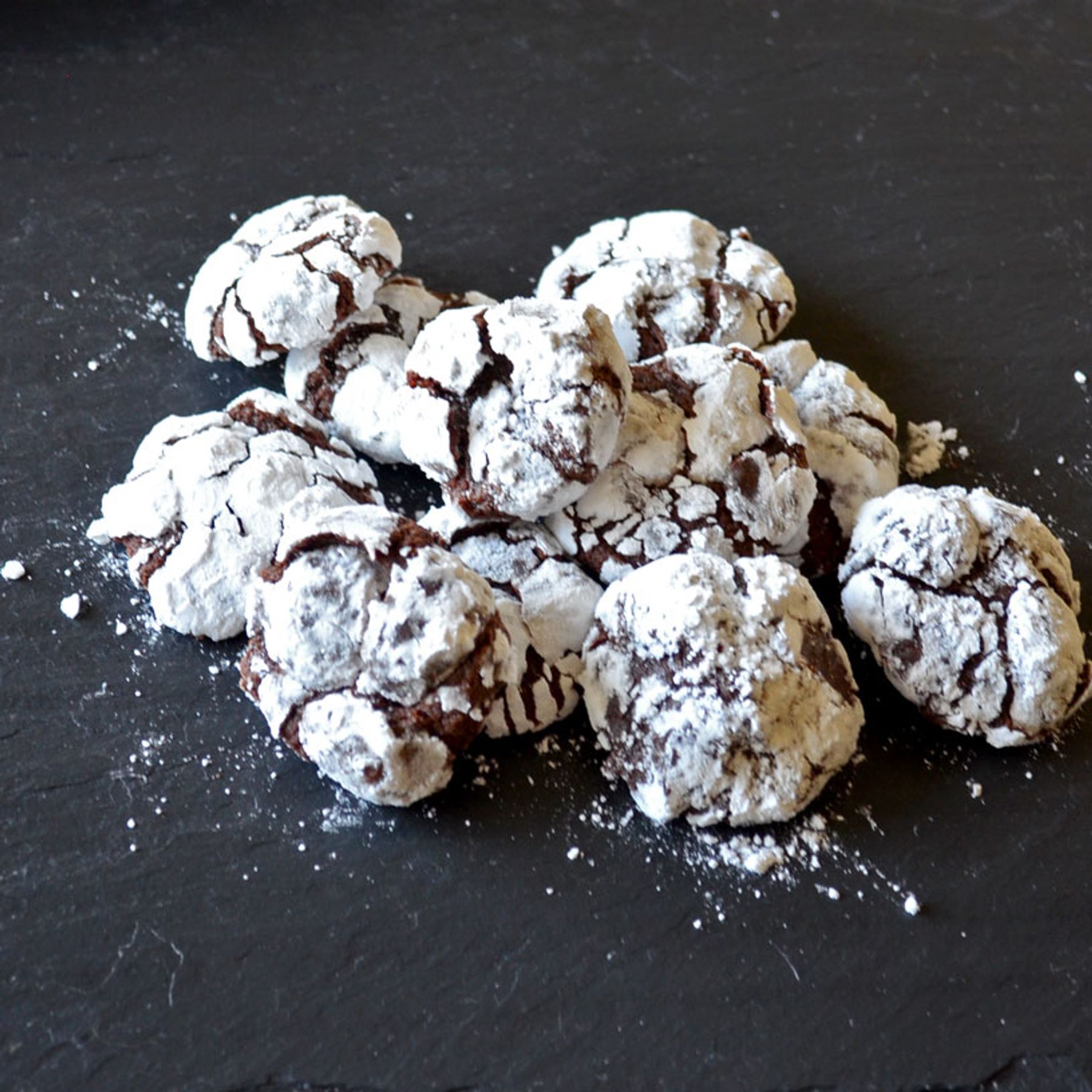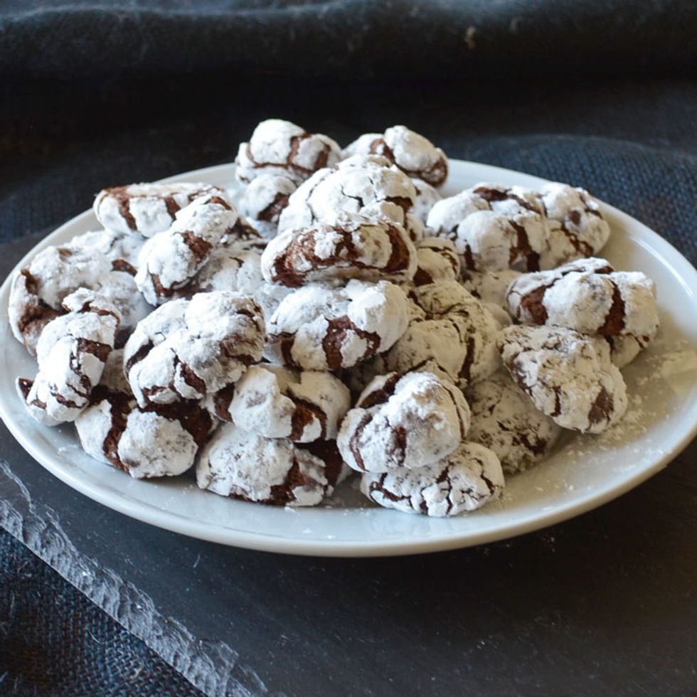 Fudgy cookies rolled in powdered sugar puff up when baked, giving them their trademark "crinkle" appearance.