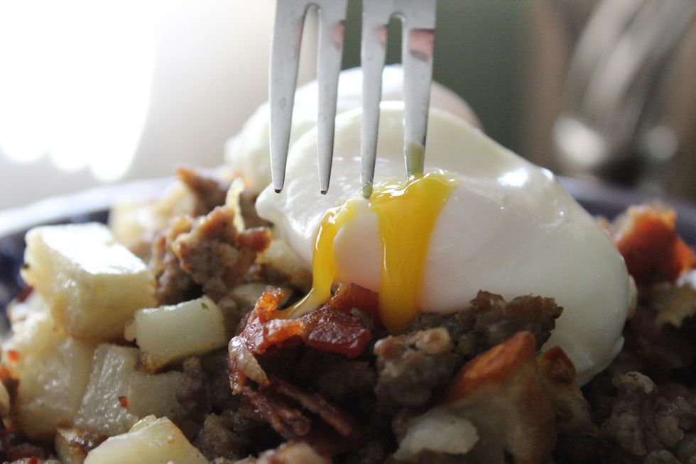 Fully Loaded Breakfast Hash with Perfectly Poached Eggs