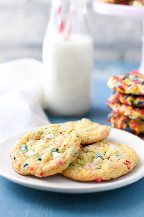 Soft and chewy homemade Funfetti Cookies start with a box of cake mix, vanilla instant pudding, and Funfetti chips! They're loaded with rainbow sprinkles for a sweet treat that appeals to kids of all ages. Grab a tall glass of milk and a handful of these Funfetti Cake Mix Cookies, because you don't need a special occasion to whip up the quick and easy dessert. No mixer and no chilling required -- they're ready from start to finish in about 20 minutes!